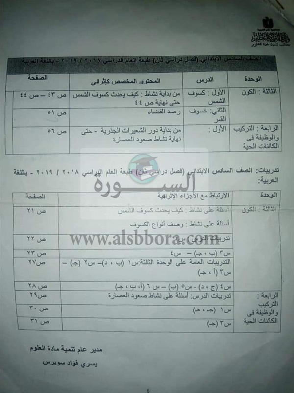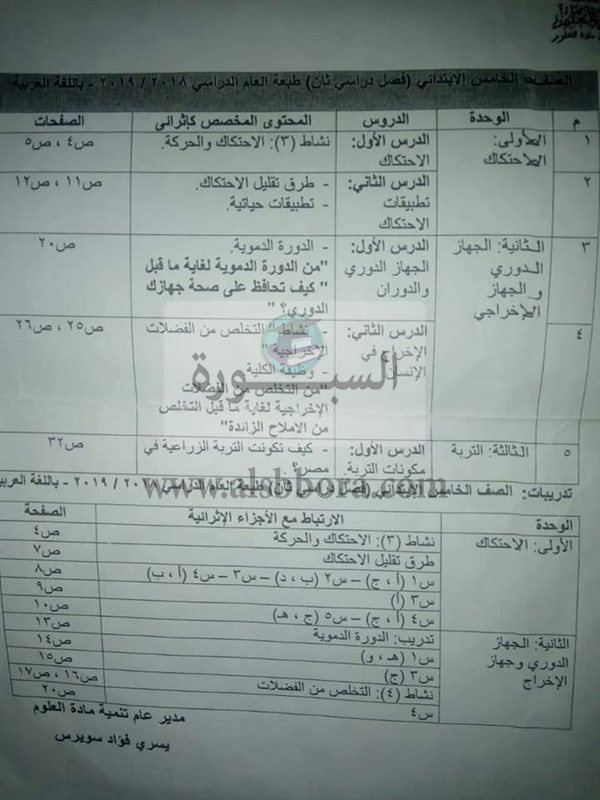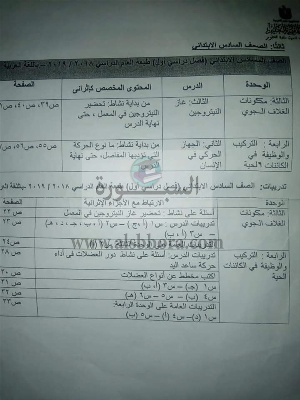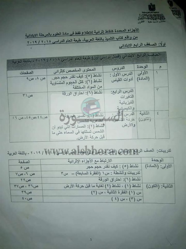 اعلن مستشار العلوم عن الاجزاء المحذوفة من مادة العلوم للمرحلة الابتدائية والتى لا تدرج فى امتحانات الترم الأول للعام الدراسى الحالى 2019/2018، والتى جاءت كالتالى: