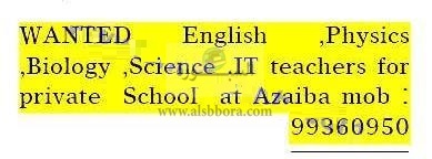 تعلن مدرسة خاصة في سلطنة عمان عن وظائف جديدة للمعلمين والمعلمات وذلك وفقا لنص الإعلان التالي: