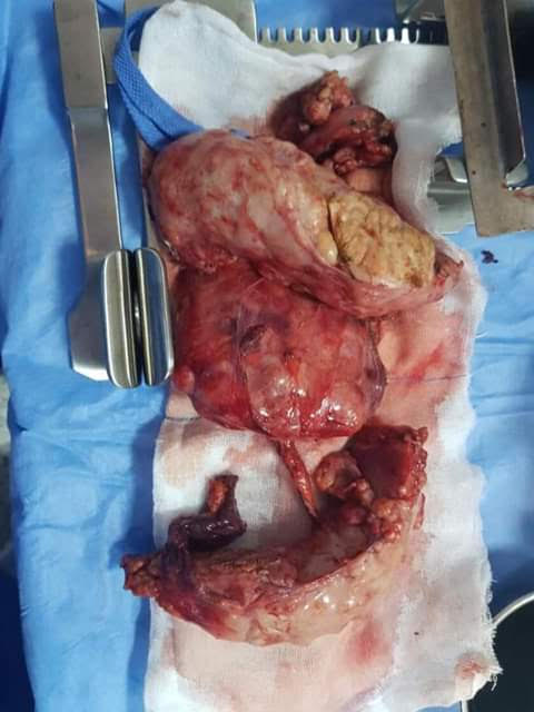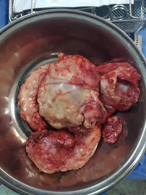 وتم ازالة الورم البالغ وزنه ٧ كجم بنجاح ، واكد الدكتور هانى عارف مدير المستشفى التخصصى بجامعة قناة السويس على استقرار الحالة ويتابع الاستاذ الدكتور عاطف ابو النور رئيس الجامعة الحالة أول بأول واعطى تعليماته بتوفير الرعاية الصحية لها حتى تتماثل للشفاء التام.