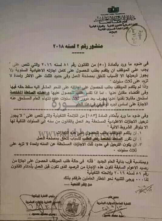 ارسلت وزارة التربية والتعليم والتعليم الفنى، منشورا الى جميع المديريات التعليمية تنظم فيها كيفية حصول المعلمين على اجازتهم الاعتيادية وفى حال رفض حصول المعلم على اجازته الاعتيادية قبل نهاية العام من مديره المسئول فمن حقه صرف بدل نقدى مقابل عدم منحه الاجازة.