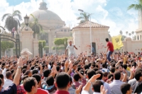 نقل طلاب الاخوان مططاهرتهم من داخل جامعة القاهرة الى ميدان النهضة، وتوجهوا صوب قوات الامن الموجودة على جميع مداخل ومخارج ميدان النهضة .