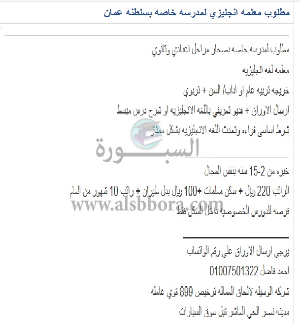 تعلن مدارس صحار العمانية عن وظائف جديدة للمعلمين والمعلمات وذلك وفقا لنص الإعلان التالي:-