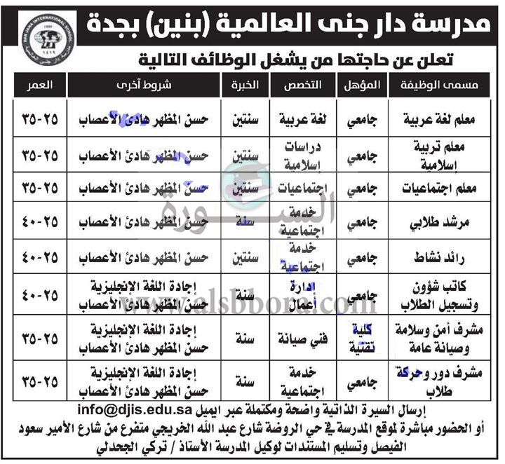 تعلن مدارس جدة السعودية تعلن عن وظائف جديدة للمعلمين والمعلمات في 8 مواد وذلك وفقا لنص الإعلان التالي:-