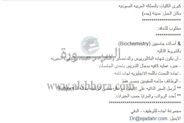 تعلن جامعة جدة السعودية عن وظائف جديدة لأعضاء هيئة التدريس "من معيد إلي أستاذ" وذلك وفقا لنص الإعلان التالي:-