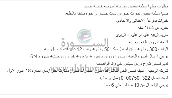 تعلن مدارس مسقط العمانية عن وظائف جديدة للمعلمين والمعلمات وذلك وفقا لنص الإعلان التالي:-
