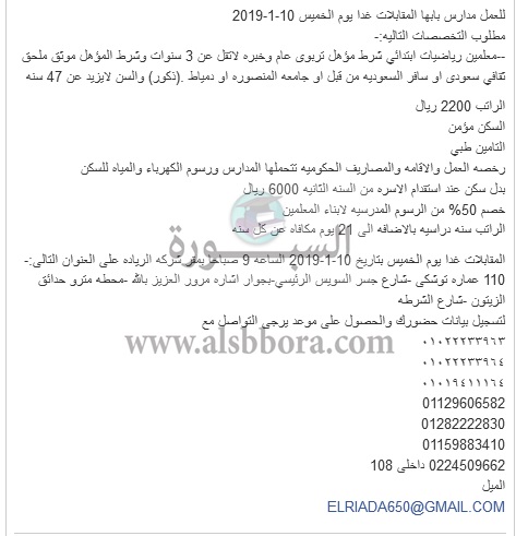 بمرتبات وبدلات تصل إلي 8000 ريال| كبري المدارس السعودية تعلن عن وظائف جديدة للمعلمين والمعلمات .. ننشر نص الإعلان