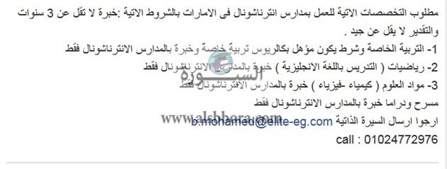أعلنت مدرسة خاصة في دولة الإمارات العربية المتحدة عن وظائف جديدة للمعلمين والمعلمات وذلك وفقا لنص الإعلان التالي:-
