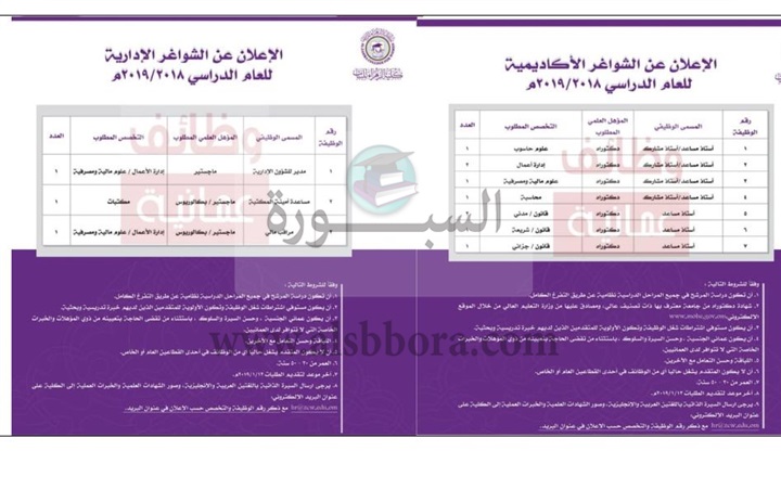 تعلن جامعة عمانية عن وظائف جديدة لأعضاء هيئة التدريس المصريين "من معيد إلي أستاذ" وذلك وفقا لنص الإعلان التالي:-