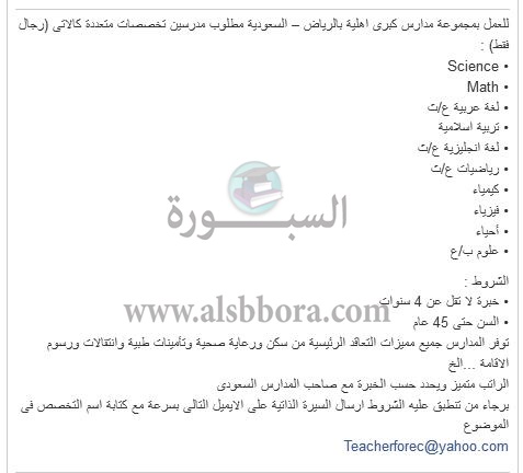 تعلن مدرسة خاصة في السعودية عن وظائف جديدة للمعلمين والمعلمات في جميع المواد وذك وفقا لما جاء في نص الإعلان التالي: