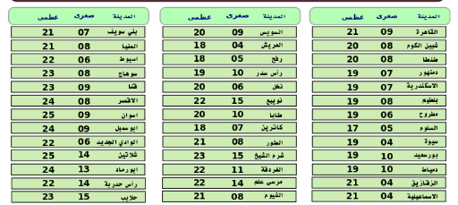 وفيما يلى درجات الحرارة المتوقعة غدا على مدن ومحافظات الجمهورية