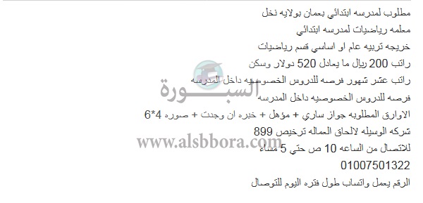 تعلن مدارس ولاية نخل العمانية عن وظائف جديدة للمعلمين والمعلمات وذلك وفقا لنص الإعلان التالي:-