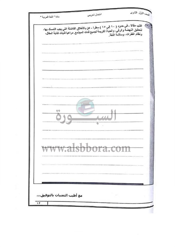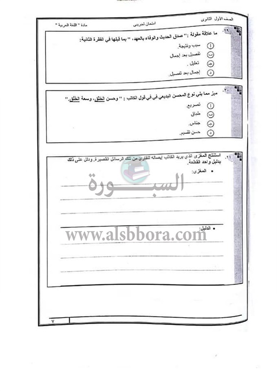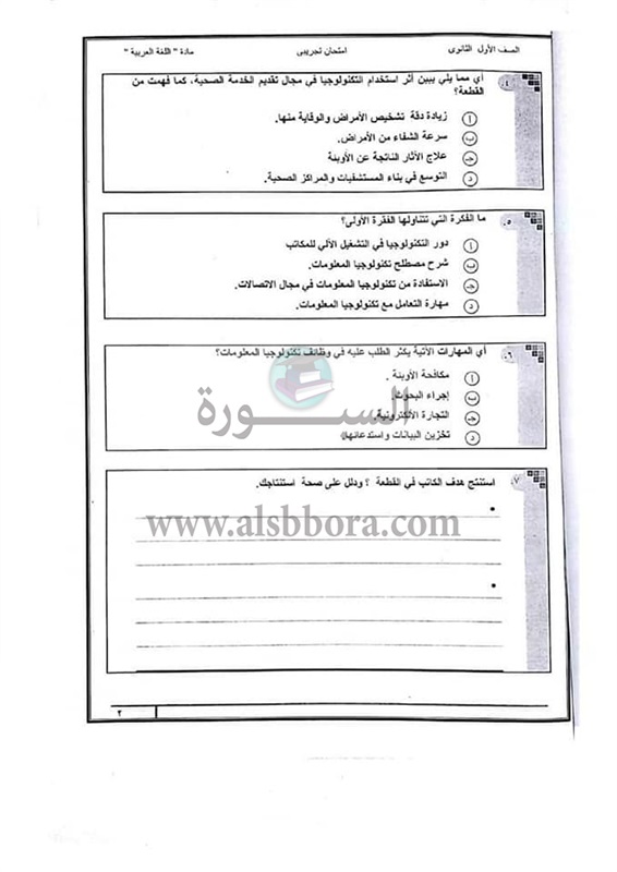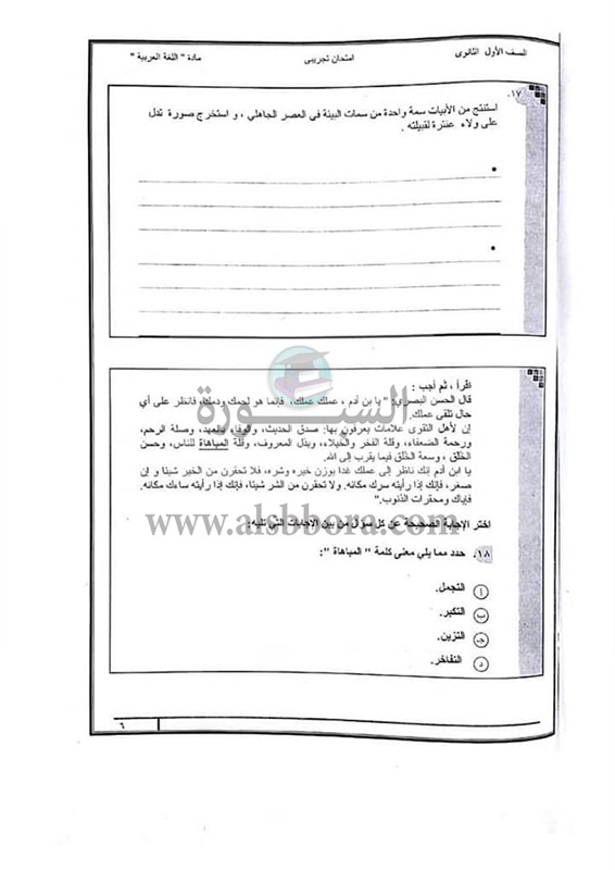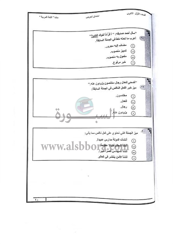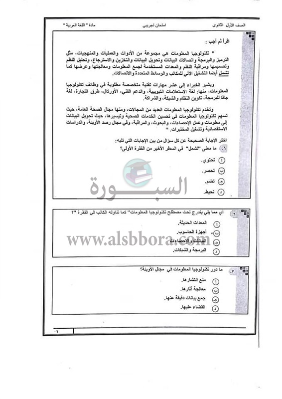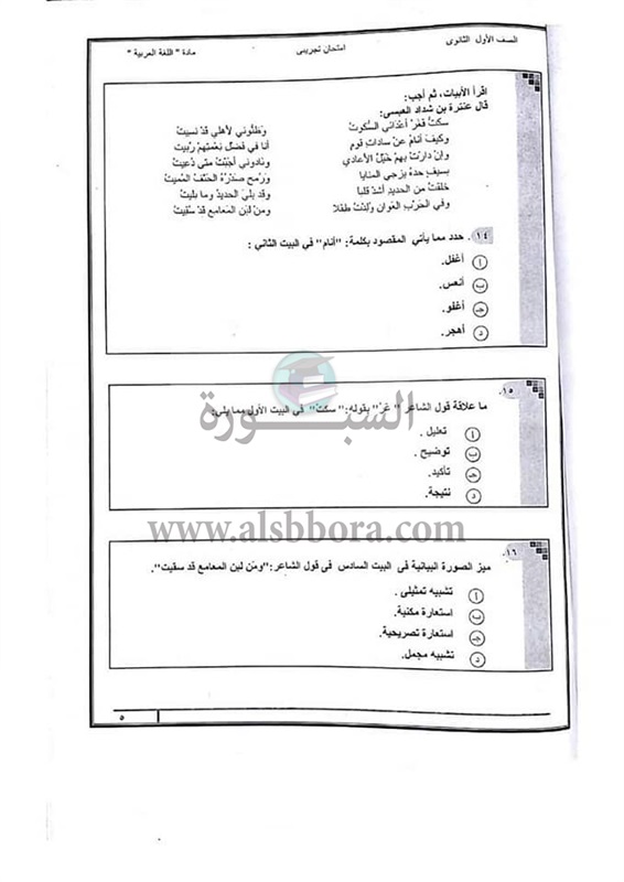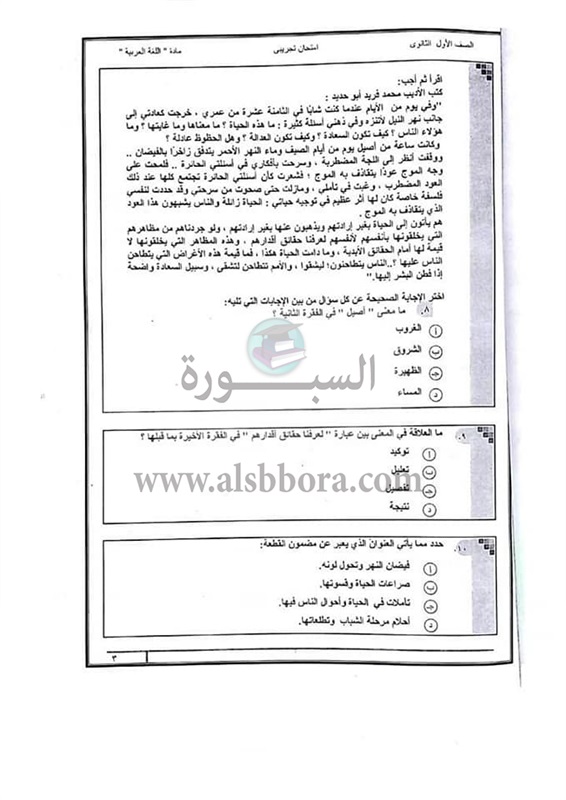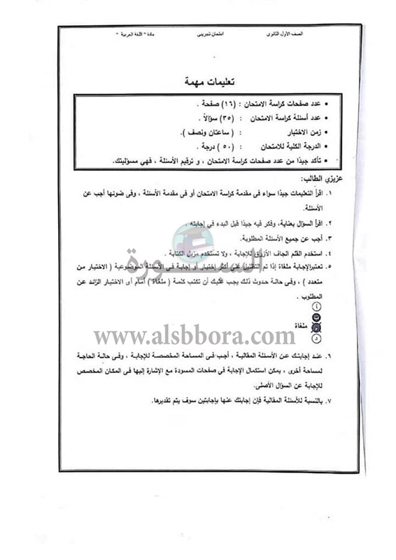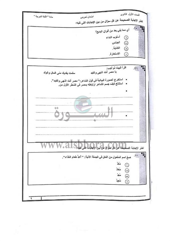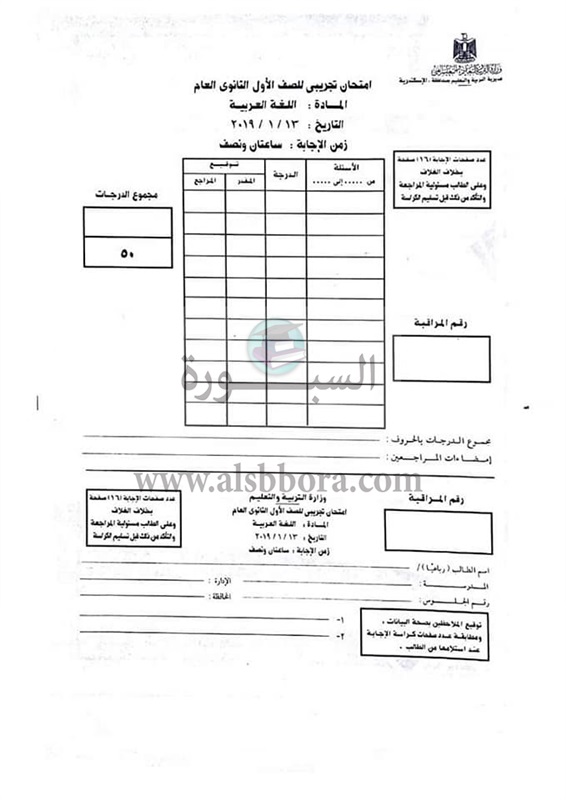 ننشر اسئلة الامتحان التجريبى للغة العربية للصف الأول الثانوى العام