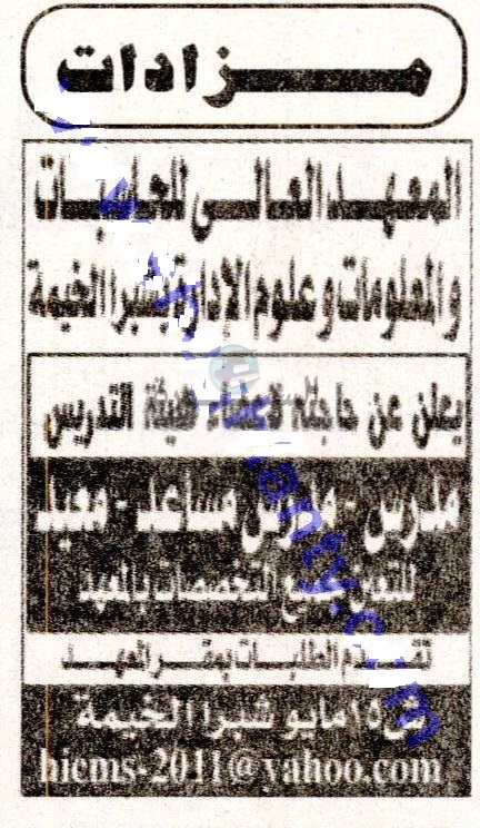 يعلن المعهد العالى للحاسبات عن حاجته الى اعضاء هيئة التدريس، وعلى الراغبين فى الحصول على الوظيفة تقديم الطلبات بمقر المعهد على العنوان التالى: