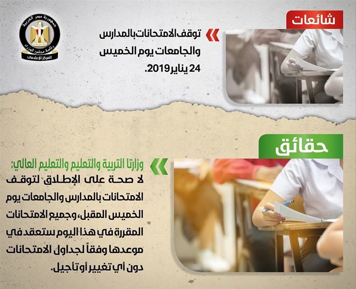 كشف مركز المعلومات التابع لمجلس الوزراء العديد من الحقائق خلال الفترة الماضية وردا قاطعا على 7 شائعات انتشرت عبر مواقع السوشيال ميديا حيث جاءت ردود مجلس الوزراء كالتالى: