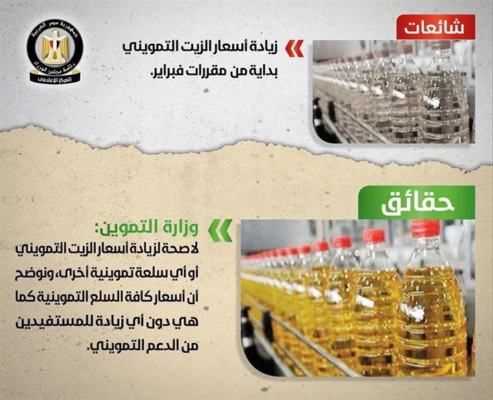 زيادة اسعار الزيت بداية من شهر فبراير.. ايقاف الامتحانات فى المدارس والجامعات.. وارتفاع تذاكر القطارات.. واحتواء الثوم على مادة الرصاص السامة.. وردود قوية من مجلس الوزراء