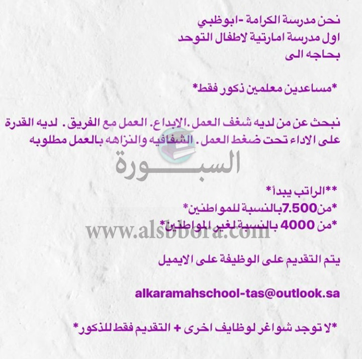 تعلن مدرسة الكرامة بأبوظبي عن وظائف جديدة للمعلمين والمعلمات بمرتبات متميزة وذلك وفقا لنص الإعلان التالي:-