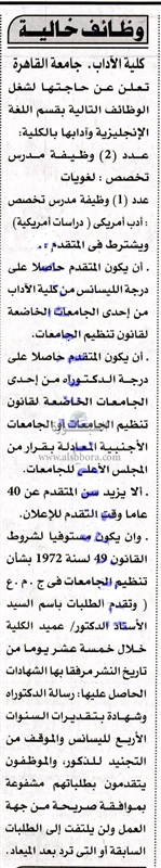 جامعة القاهرة تعلن حاجتها الى اعضاء هيئة التدريس