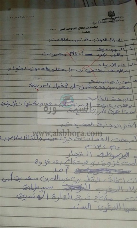 حصلت "السبورة" علي ورقة إجابة في مادة التاريخ بالصف الثاني الثانوي اثناء امتحانات الترم الأول للعام 2018/2019 .