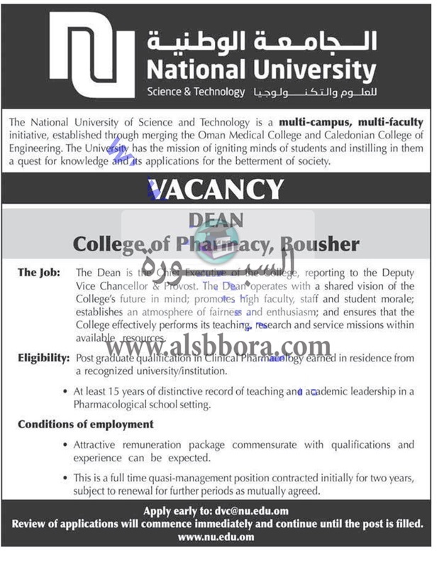تعلن كبري جامعات سلطنة عمان عن وظائف جديدة لأعضاء هيئة التدريس "من معيد إلي أستاذ" وذلك وفقا لنص الإعلان التالي:-