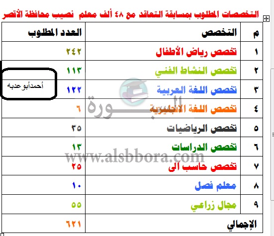 تبدأ وزارة التربية والتعليم الإعلان عن التعاقد مع المعلمين لسد العجز ببعض التخصصات حيث أرسلت كل مديرية تعليمية العجز بكل تخصص وكان العجز بمدارس الأقصر يصل إلى 621 معلماَ، في تخصص رياض الأطفال يصل العجز ل242 وتخصص النشاط الفني 113 و تخصص اللغة العربية يحتاج 122معلماَ وتخصص المجال الزراعي 55 وتخصص اللغة الانجليزية 6 وتخصص معلم فصل 10 وتخصص الرياضيات 35 وتخصص الدراسات 13 وتخصص الحاسب الاَلى 25 معلماً وسوف يكون التعاقد لسد العجز بالفصل الدارسى الثانى وسيكون التقديم يوم الخميس القادم الموافق 7 فبراير.