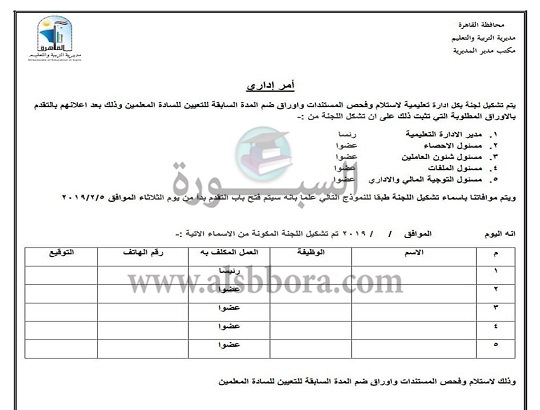 إلى الإدارات التعليمية المختلفة لبدء استلام المستندات من المعلمين وأوضح أن وكيل اول وزارة القاهرة محمد عطيه ومدير