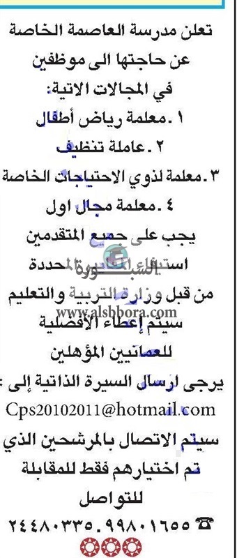 تعلن مدرسة خاصة في دولة سلطنة عمان عن وظائف جديدة للمعلمين والمعلمات وذلك وفقا لنص الإعلان التالي:-
