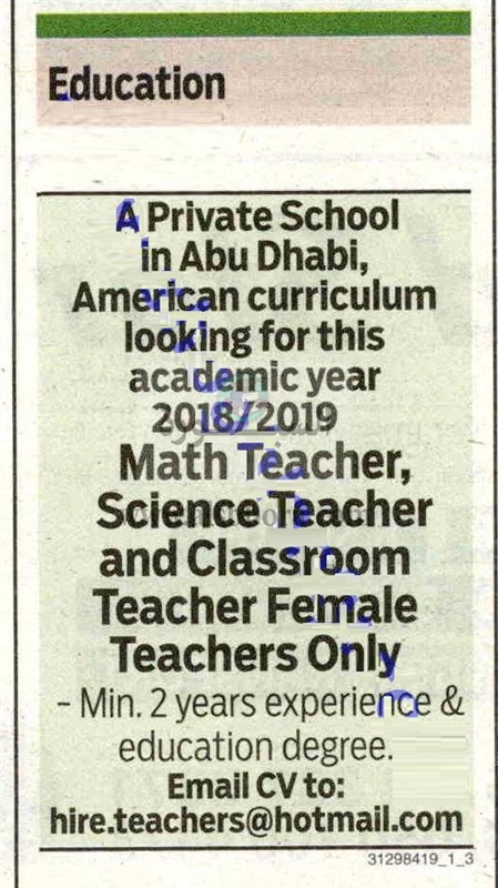 تعلن مدرسة خاصة في دولة الإمارات عن وظائف جديدة للمعلمين والمعلمات وذلك في التخصصات التالي:-