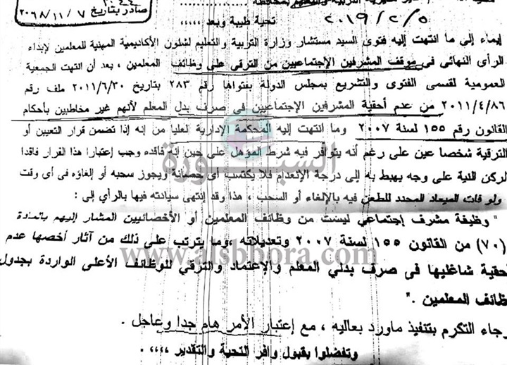 وأضاف النائبة على صفحتها الرسمية بموقع التواصل الاجتماعى "فيسبوك" بانها ذهبت اليه فى مكتبه للاستفسار عن قرار وزارة التربية والتعليم بحرمان المشرفين الاجتماعيين من الكادر، موضحة ان نائب الوزير كشف لها ان هذا القرار من نوفمبر الماضى وللأسف وصل الى المديريات متأخرا ومنذ يومين.