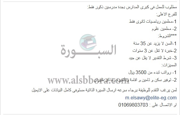تعلن مدرسة خاصة في مدينة جدة السعودية عن وظائف جديدة للمعلمين والمعلمات في جميع المواد وذلك وفقا لنص الإعلان التالي:-