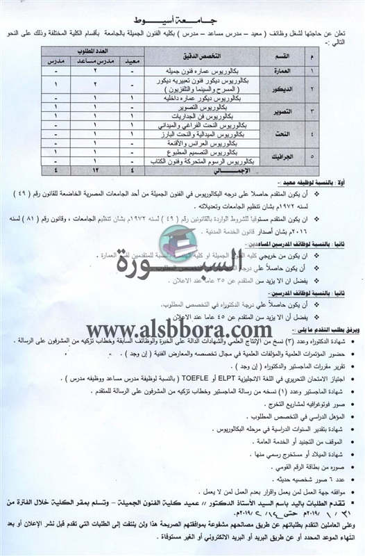 تعلن جامعة حكومية عن وظائف جديدة لاعضاء هيئة التدريس "من معيد الى أستاذ" علما بأن أخر موعد للتقديم الخميس المقبل وذلك وفقا لنص الإعلان التالي:-