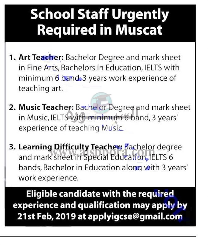 تعلن مدارس مسقط العمانية عن وظائف جديدة للمعلمين والمعلمات وذلك وفقا لنص الإعلان التالي: