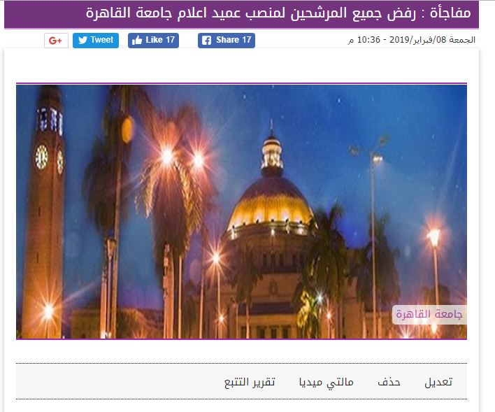مفاجأة : رفض جميع المرشحين لمنصب عميد اعلام جامعة القاهرة