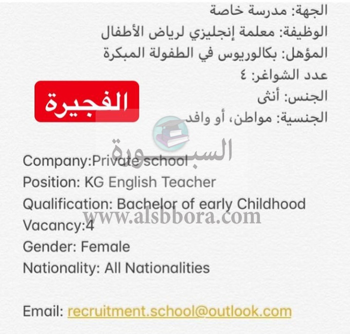 عاجل| مدارس الفجيرة الإماراتية تعلن عن وظائف جديدة للمعلمين والمعلمات.. ننشر نص الإعلان