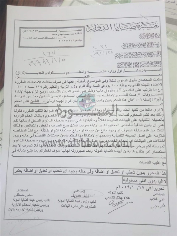 بالمستندات| ننشر نص حكم هيئة قضايا الدولة بصرف 500 يوم مكافأة امتحانات بدلا من 200 يوم