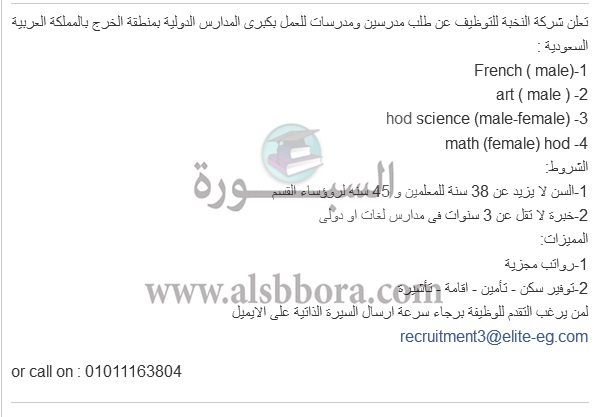 تعلن كبري المدارس السعودية عن وظائف جديدة للمعلمين والمعلمات وذلك وفقا لنص الإعلان التالي:-