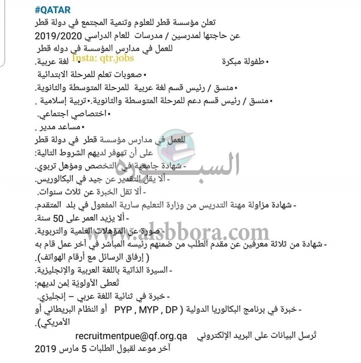 تعلن كبري المدارس القطرية عن وظائف جديدة للمعلمين والمعلمات وذلك وفقا لنص الإعلان التالي:-