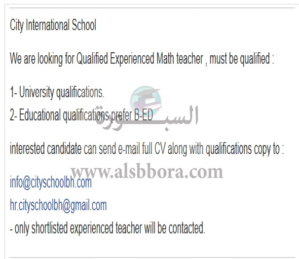 تعلن مدرسة خاصة في مملكة البحرين عن وظائف جديدة للمعلمين والمعلمات وذلك وفقا لنص الإعلان التالي:-