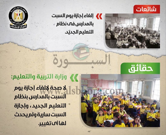 وأكد البيان أنه لا صحه بصدور قرارا إلغاء إجازة يوم السبت بالمدارس في نظام التعليم الجديد.