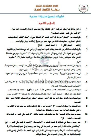 الى جميع المدارس بشأن المعلمين.. تنبية مهم وعاجـل للتسجيل على استمارة ( 1 ) سرى عضوية ثانوية عامة