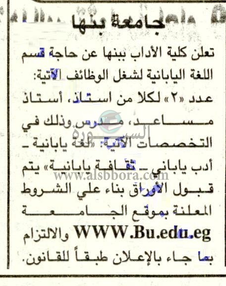 تعلن جامعة بنها عن وظائف جديدة لأعضاء هيئة التدريس "من معيد إلي أستاذ" وذلك وفقا لنص الإعلان التالي: