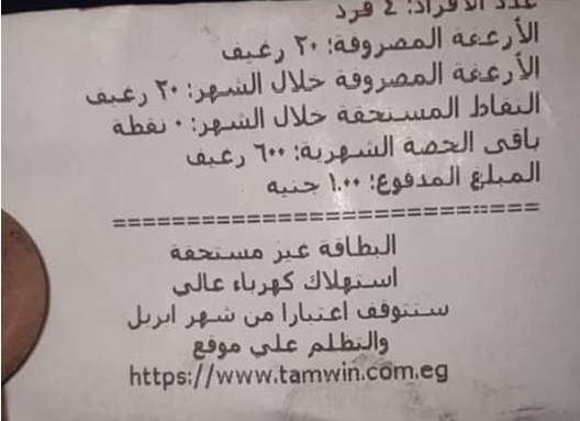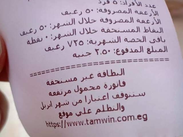 يلاحظ أن من لن يتقدم بتظلم وهو منذر ببون الصرف بأن بطاقته سوف تتوقف أول ابريل وسيكون مصير بطاقتة التموينية الوقف النهائى أيضاً بداية شهر أبريل .