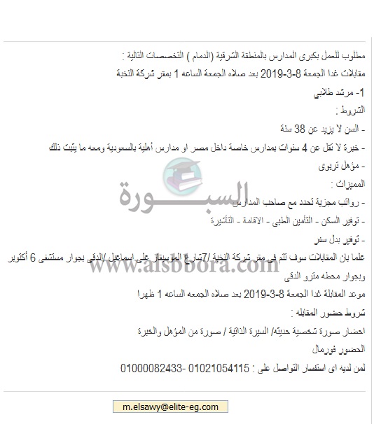 عاجل| مدارس الدمام السعودية تعلن عن وظائف جديدة للمعلمين والمعلمات.. ننشر نص الإعلان