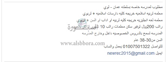 تعلن مدرسة خاصة في سلطنة عمان عن وظائف جديدة للمعلمين والمعلمات وذلك وفقا لنص الإعلان التالي: