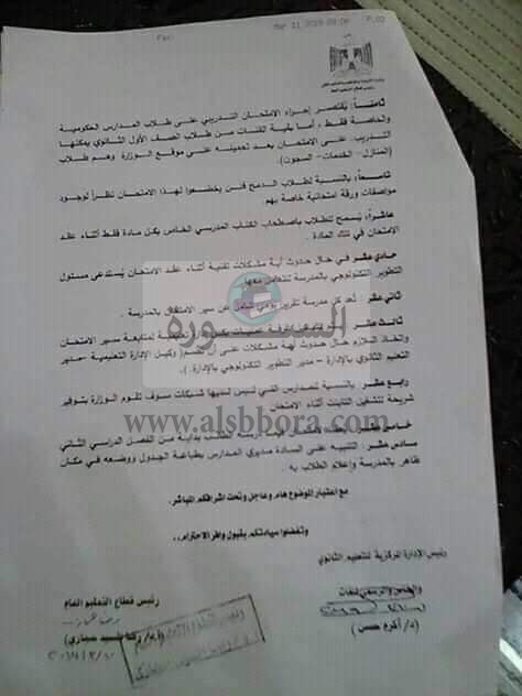 ارسلت وزارة التربية والتعليم والتعليم الفنى، خطابا الى جميع