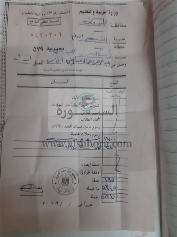 وتابع "حفظ على المال العام وكذا حماية أبناءنا من الإبتزاز من قبل من نأتمنهم على تربية وتعليم أبنائنا نهيب بسيادتكم إتخاذ اللازم حيال هذا الأمر، هذا وبحوزتنا إيصالات متعددة .. فكل الإيصالت بهذا الشكل".