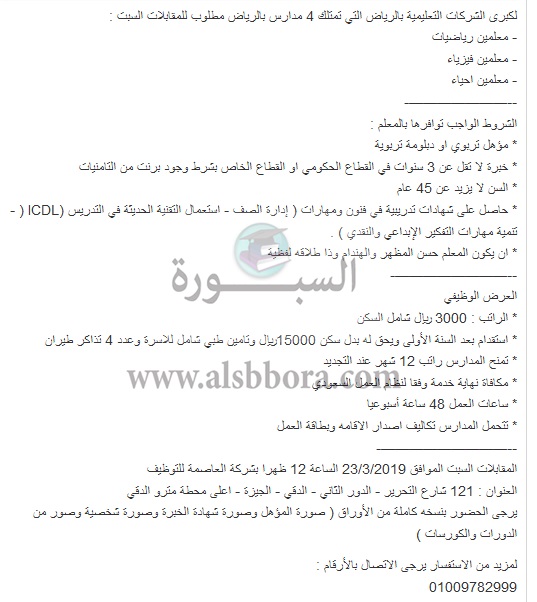 تعلن مدراس رائدة بالمملكة العربية السعودية عن وظائف جديدة للمعلمين والمعلمات المصريين وذلك وفقا لنص الإعلان التالي: