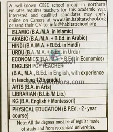 بمرتبات متميزة| كبري المدارس الإماراتية تعلن عن وظائف جديدة للمعلمين والمعلمات... ننشر نص الإعلان