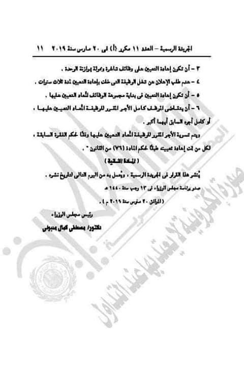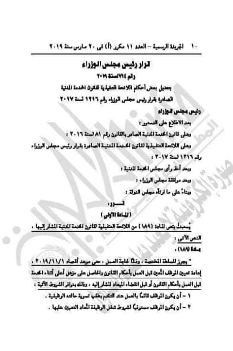 قرار رئيس مجلس الوزراء بأحقية التسوية للحاصلين على مؤهل عال اثناء الخدمة