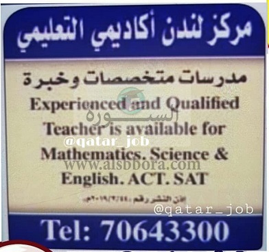 تعلن مؤسسة تعليمية قطرية عن وظائف جديدة للمعلمين والمعلمات وذلك وفقا لنص الإعلان التالي: