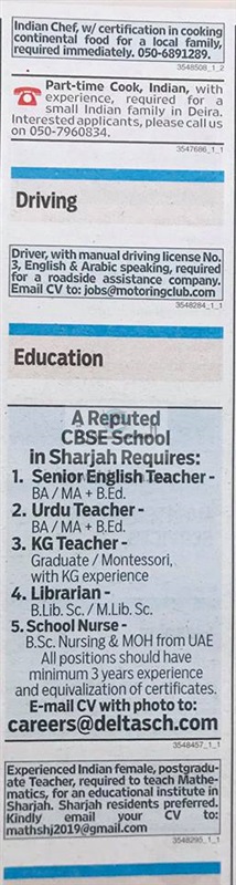 تعلن مدارس الشارقة عن وظائف جديدة للمعلمين والمعلمات وذلك وفقا لنص الإعلان التالي:-